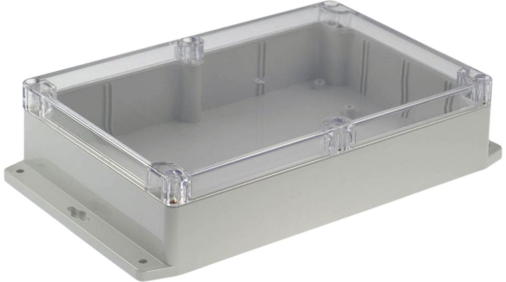 This is 455 Series Light Grey Polycarbonate General Purpose Enclosure IP65 Flanged Transparent Lid 146x222x55mm manufactured by RND. The manufacturer part number is RND 455-00244. Flange Options - yes. It is IP rated with ip65. Its external length includes 222 mm. The product rnd 455, is a highly preferred choice for users. It has a decent light grey colour. The product's body is nicely designed from polycarbonate materials. The lid has a classical transparent colour. Features 146x222x55mm external caliber. While its external height is 55 mm. The product is 146 mm wide.