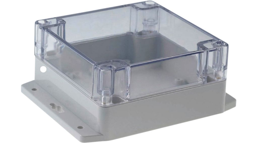 This is 455 Series Light Grey Polycarbonate General Purpose Enclosure IP65 Flanged Transparent Lid 120x120x60mm manufactured by RND. The manufacturer part number is RND 455-00267. Flange Options - yes. It is IP rated with ip65. Its external length includes 120 mm. The product rnd 455, is a highly preferred choice for users. It has a decent light grey colour. The product's body is nicely designed from polycarbonate materials. The lid has a classical transparent colour. Features 120x120x60mm external caliber. While its external height is 60 mm. The product is 120 mm wide.