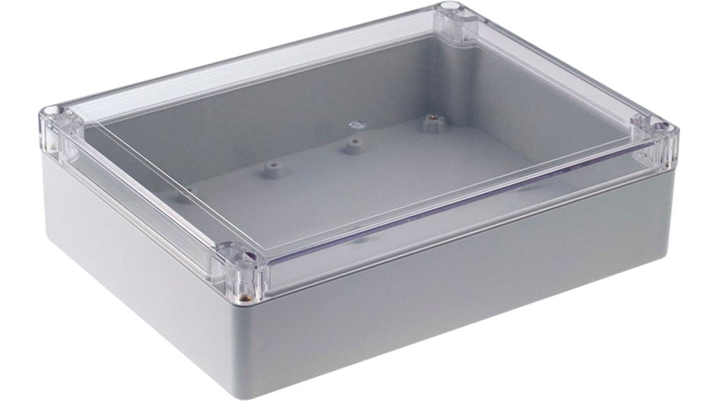This is 455 Series Light Grey Polycarbonate General Purpose Enclosure IP65 Transparent Lid 150x200x55mm manufactured by RND. The manufacturer part number is RND 455-00140. Flange Options - no. It is IP rated with ip65. Its external length includes 200 mm. The product rnd 455, is a highly preferred choice for users. It has a decent light grey colour. The product's body is nicely designed from polycarbonate materials. The lid has a classical transparent colour. Features 150x200x55mm external caliber. While its external height is 55 mm. The product is 150 mm wide.