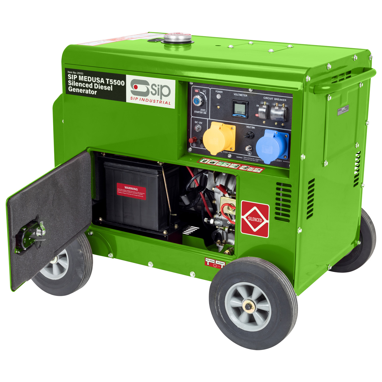 This is 5kW Generator 110/230V ac Output 155kg manufactured by SIP. The manufacturer part number is 25153. The typical product's weight is 155kg. The product offers a maximum 5.5kw output power . It offers a continuous 5kw output power . It has a fuel tank capacity up to 16l . Features a 110/230v ac output voltage. Its electrical phase configuration includes single phase.