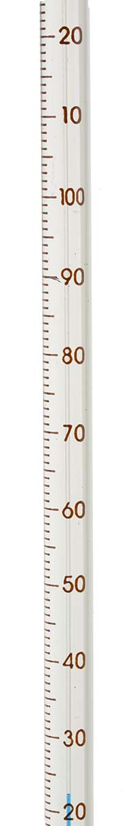 The Brannan 44-803-8 Glass Thermometer is a dependable, immersion-type instrument designed for precise temperature measurement primarily in laboratory and industrial settings. This thermometer is filled with LO-tox™, a safer, non-toxic organic fluid chosen for its wide temperature span and minimal hazard profile, making it an excellent mercury-free alternative. It is marked with a Centigrade scale and covers a wide temperature range. It features a robust construction with anti-roll end caps for reliable and easy handling during chemical or thermal processes.