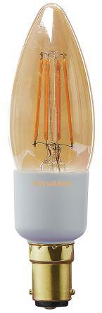 This is B15 Base GLS LED Candle Bulb 4.5 W 26W Equiv. 260 lm ToLEDo RETRO MagmaGlow Dimmable 220 → 240 V manufactured by Sylvania. The manufacturer part number is 27305. Its diameter is 35mm. The product has a current rating of 27 ma. Moreover, the product has a nominal 220 → 240 v voltage rating. The product toledo retro, is a highly preferred choice for users. This product carries 4.5 w. In addition, it has about 26w incandescent equivalent wattage . It is rated with a+ EU energy efficiency. The lamp base is b15. Its accurate length is 116 mm. It is dimmable yes . It has about 80 colour rendering . Features luminosity up to 260 lm. It includes a/an candle shape lamp . Adding to this, it has a long life span for about 15000h. The tone of the colour includes magmaglow.