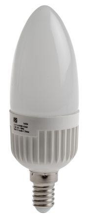 This is E14 LED GLS Bulb 5.5 W(35W) 6000K Cool Daylight Candle shape manufactured by RS Pro. The manufacturer part number is 786-9121. Its diameter is 41mm. This integrates a colour temperature of 6000k. Moreover, the product has a nominal 220 → 240 v voltage rating. Features luminosity up to 400 lm. This product carries 5.5 w. In addition, it has about 35w incandescent equivalent wattage . It is rated with a+ EU energy efficiency. The lamp base is e14. Its accurate length is 125 mm. It is dimmable no . It has about 70 → 80 colour rendering . It includes a/an candle shape lamp . Adding to this, it has a long life span for about 25000h. The tone of the colour includes cool daylight.
