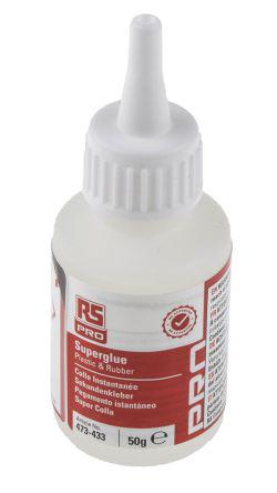 This is 50 g Super Glue manufactured by RS Pro. The manufacturer part number is 473-433. Its actual cure time is about < 5 . Additionally, it is suitable for metal yes . Whereas, the minimum operating temperature of the product is -50°c. Additionally, it is suitable for rubber yes . The product is suitable for glass yes . Additionally, it has a super glue type glue . It has a decent transparent colour. It has low viscosity . The product is suitable for wood yes . The product has low/no odour no . The package is a sort of bottle. The product is suitable for plastic yes . Its package size is approximately 50 g . The product is in liquid form . It has a maximum operating temperature of +80°c. With ethyl base chemical .
