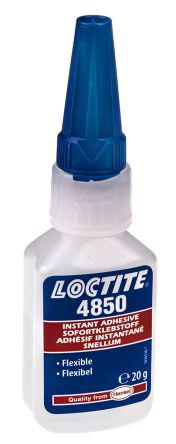 This is 4850 20 g Super Glue manufactured by Loctite. The manufacturer part number is 373358. It is assigned with a trade name of loctite 4850. Its actual cure time is about < 5 . Additionally, it is suitable for metal yes . Whereas, the minimum operating temperature of the product is -40°c. Additionally, it is suitable for rubber yes . The product is suitable for glass yes . Additionally, it has a super glue type glue . It has a decent transparent colour. It has low viscosity . The product is suitable for wood yes . The product has low/no odour no . The package is a sort of bottle. The product is suitable for plastic yes . Its package size is approximately 20 g . The product is in liquid form . It has a maximum operating temperature of +80°c. With ethyl base chemical .