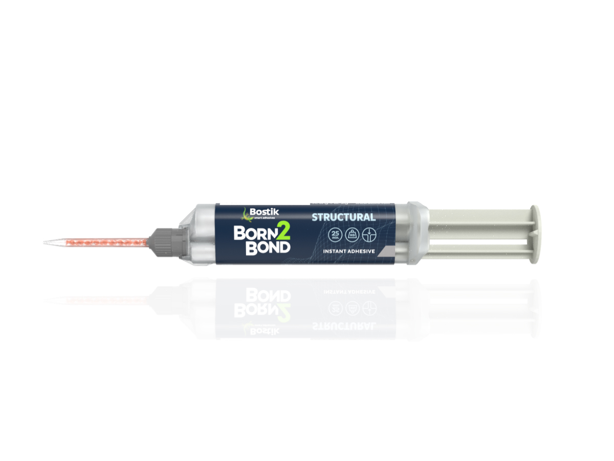 This is Born2Bond Hybrid CA & Acrylate 10 g manufactured by Bostik. The manufacturer part number is 30619518. It is assigned with a trade name of born2bond structural. Its actual cure time is about < 5 . Whereas, the minimum operating temperature of the product is -40°c. Additionally, it is suitable for rubber yes . The product is suitable for glass no . The product is in gel form . It has a decent transparent colour. Additionally, it has a 2k cyanoacrylate type glue . The product is suitable for wood yes . The product has low/no odour yes . The package is a sort of syringe. The product is suitable for plastic yes . Its package size is approximately 10 g . Additionally, it is suitable for metal yes . It has a maximum operating temperature of 120°c. With hybrid cyanoacrylate & acrylate base chemical .