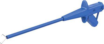 This is 4A Blue Grabber Clip 1kV Rating - 2.5mm Tip Size 4mm Probe Socket Size manufactured by Staubli. The manufacturer part number is 24.0227-23. The tip is 2.5mm in size. The product has a current rating of 4a. Moreover, the product has a nominal 1kv voltage rating. It has a decent blue colour. Moreover, it has about 4mm size probe socket . The product is made from sturdy stainless steel materials.