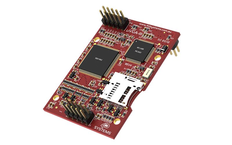 This is Graphics Controller 800 x 480pixel I2C UART manufactured by 4D Systems. The manufacturer part number is uVGA-III. The product is designed with a standard 800 x 480pixel display resolution . It is a type of i2c, uart interface.