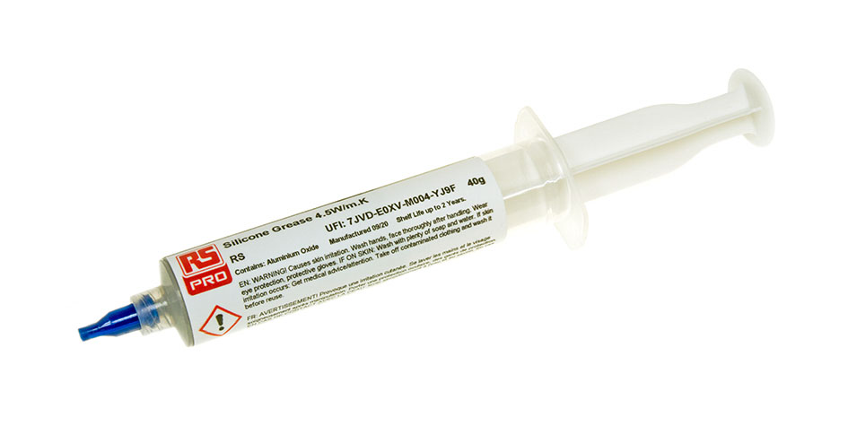This is Silicone Grease 40 g Syringe manufactured by RS PRO. The manufacturer part number is 206-5709. The product is food processing safe no . The product is in grease form . It has a decent grey colour. The package is a sort of syringe. Whereas, the minimum operating temperature of the product is -40°c. Its package size is approximately 40 g . It has a maximum operating temperature of +200°c. It contains silicone type grease .