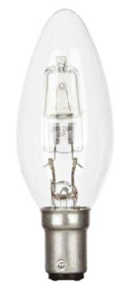 This is 42 W Clear GLS Halogen Bulb BC / B15 Candle 240 V 36mm manufactured by GE. The manufacturer part number is 76571. Its diameter is 36mm. Moreover, the product has a nominal 240 v voltage rating. This product carries 42 w. In addition, it has about 60w incandescent equivalent wattage . It has clear lamp finish . It is rated with d EU energy efficiency. The lamp base is bc / b15. Its accurate length is 100 mm. It includes a/an candle shape lamp . Adding to this, it has a long life span for about 2000h.