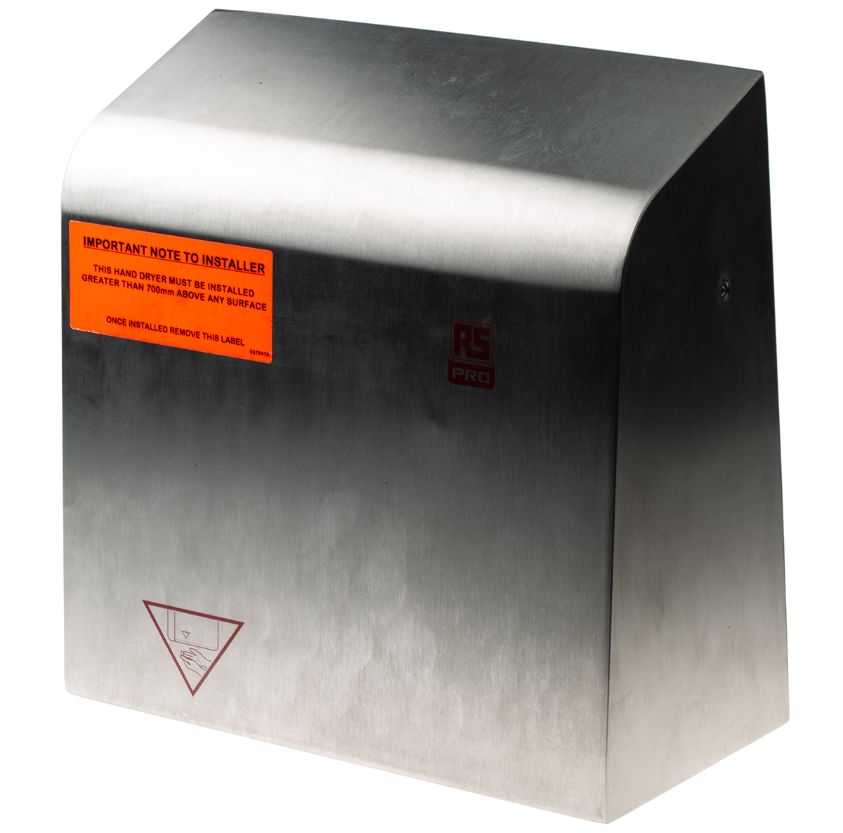 This is Automatic Stainless Steel 2kW Hand Dryer 148mm x 280mm x 270mm manufactured by RS Pro. The manufacturer part number is 612-0986. A quality product with a nice enamelled finish. Moreover, the product is automatic . The casing is constructed from highly stable stainless steel material. In addition, the height is 280mm. Furthermore, the product is 270mm wide. The product comes in 148mm depth. It has a 200m³/h air flow rate. Features 220 → 240v ac supply voltage. Feature 2kw of power rating.