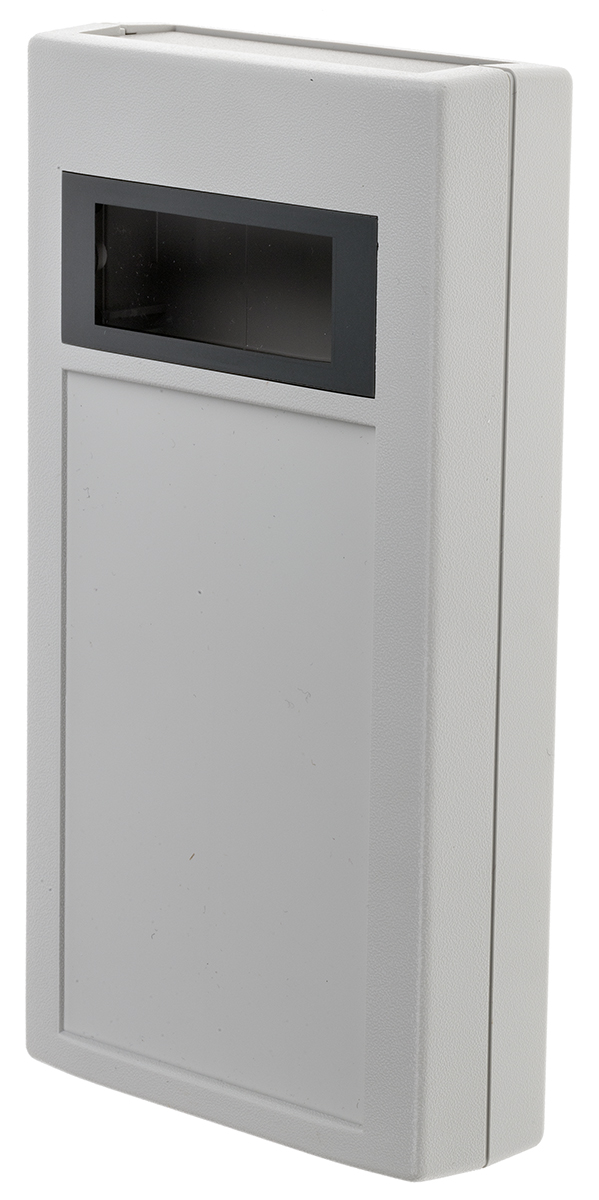 This is IP64 Handheld Enclosure Polystyrene Grey 150 x 80 x 30mm manufactured by RS Pro. The manufacturer part number is 584-867. It includes an integral battery compartment . The product complies with all safety standards, such as rohs compliant, ul 94v-0. It is IP rated with ip64. It has a keypad recess trait yes . It has a decent grey colour. It has a display window feature yes . Its external length includes 150 mm. The product's body is nicely designed from ps materials. Features 150 x 80 x 30mm external caliber. While its external height is 30 mm. The product also provides special features, such as lcd display cut-out & 2 plastic end covers. The product is 80 mm wide.