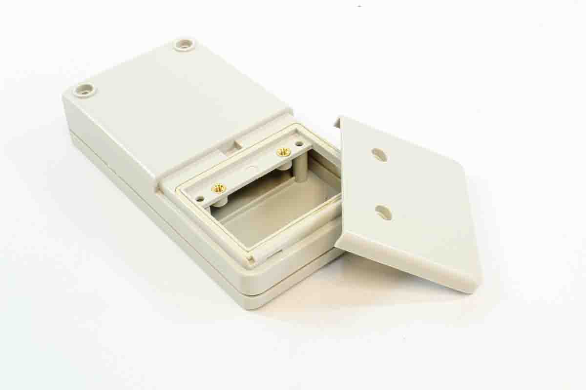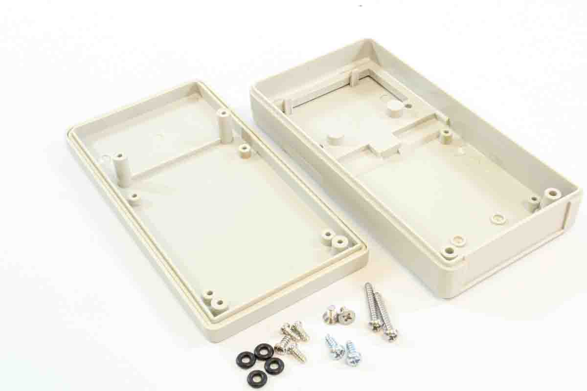 This is ABS Hand Held Enclosure With Integral Battery Compartment IP65 130 mm x 25 mm x 68 mm manufactured by RS PRO. The manufacturer part number is 198-1363. It includes an integral battery compartment . It is IP rated with ip65. Its external length includes 130 mm. The product's body is nicely designed from abs materials. Features 130 x 68 x 25mm external caliber. While its external height is 25 mm. The product is 68 mm wide.