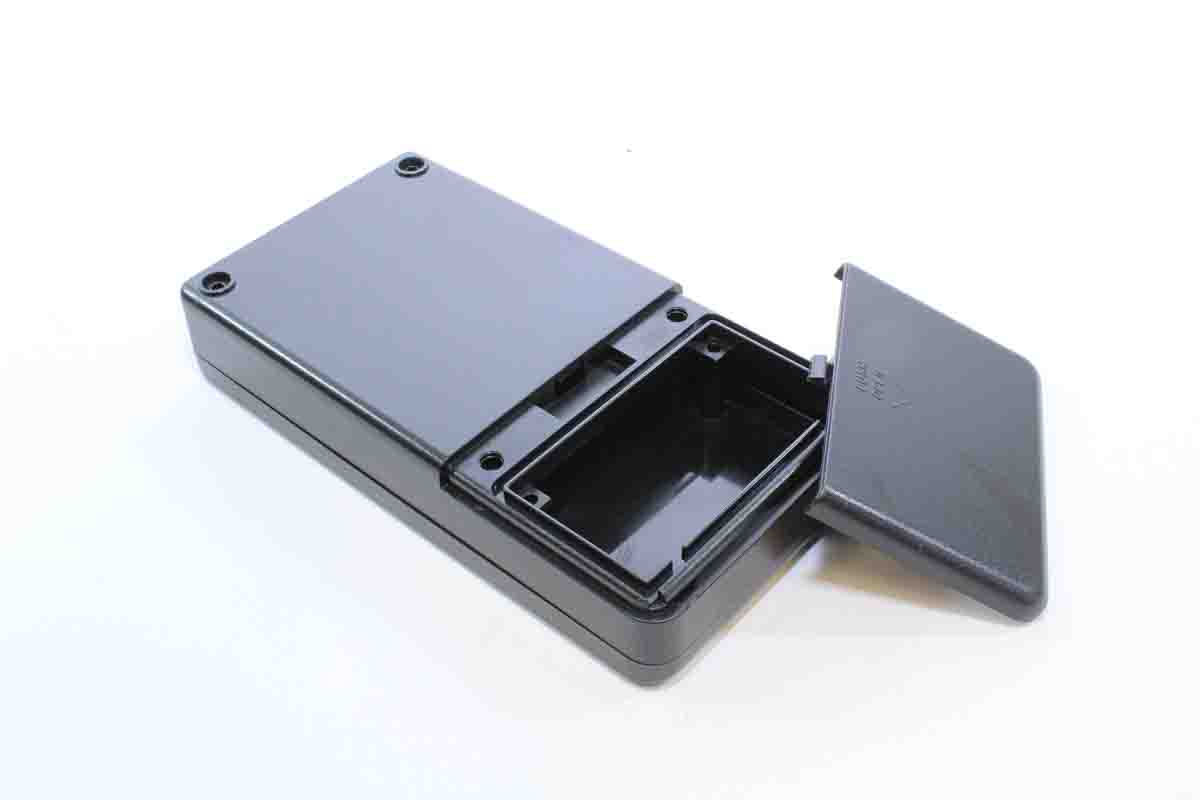 This is ABS Hand Held Enclosure With Integral Battery Compartment IP54 160 mm x 30 mm x 84 mm manufactured by RS PRO. The manufacturer part number is 198-1368. It includes an integral battery compartment . It is IP rated with ip54. Its external length includes 160 mm. The product's body is nicely designed from abs materials. Features 160 x 84 x 30mm external caliber. While its external height is 30 mm. The product is 84 mm wide.