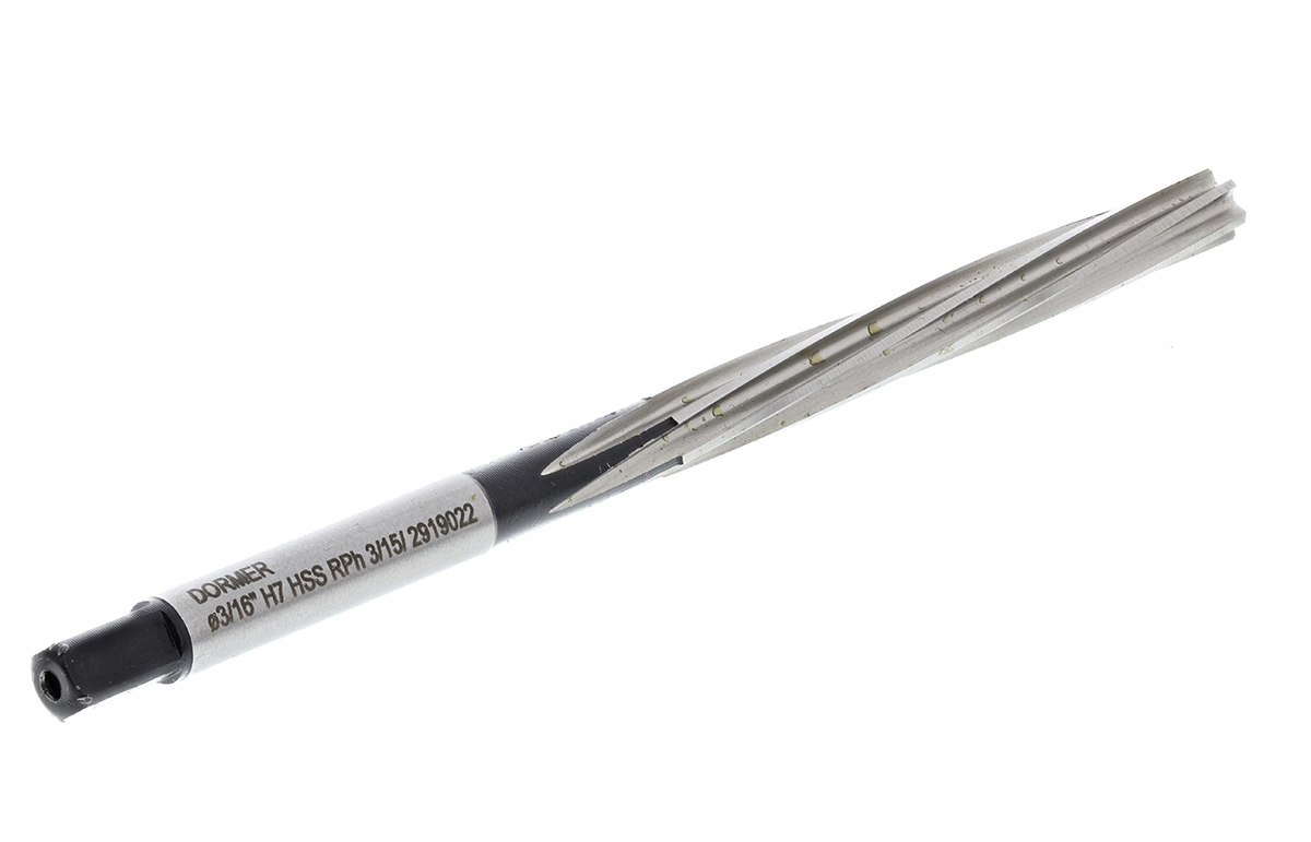 This is 3/16in x 87 mm HSS Spiral Flute Hand Reamer manufactured by Dormer. The manufacturer part number is B100 3/16. The includes a spiral type flute . Its diameter is 3/16in. The product is made from highly stable and reliable hss. It has an overall length of 87 mm.