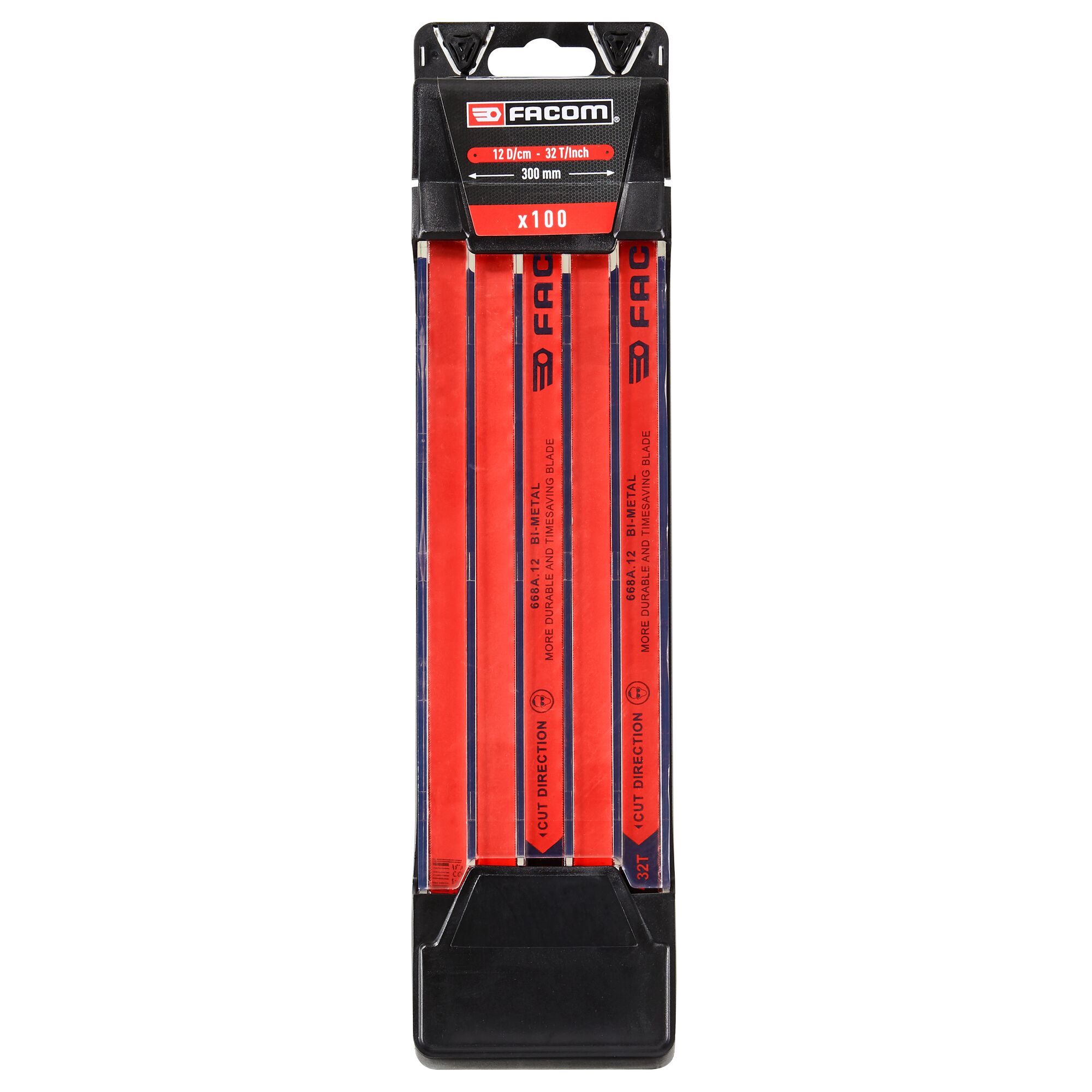 This is 300 mm Cobalt Steel Hacksaw Blade 32 TPI manufactured by Facom. The manufacturer part number is 668A.12PB. It has 12 number of teeth per inch . It is designed with a hacksaw blade type saw blade . It is offered with a standard blade thickness about 1mm . The product is made from highly stable and reliable bi-metal. The blade has a length of 300 mm. It is offered to cut metal materials . The product consists of 100 pieces.