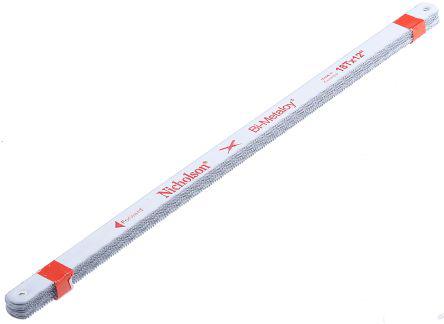 This is 304 mm High Carbon Steel Hacksaw Blade 18 TPI manufactured by Cooper Tools. The manufacturer part number is 62723 18 DENTS. It has 18 number of teeth per inch . It is designed with a hacksaw blade type saw blade . The product is made from highly stable and reliable high carbon steel. Furthermore, the product is 12.7mm wide. The blade has a length of 304.0 mm. It is offered to cut multiple materials materials .