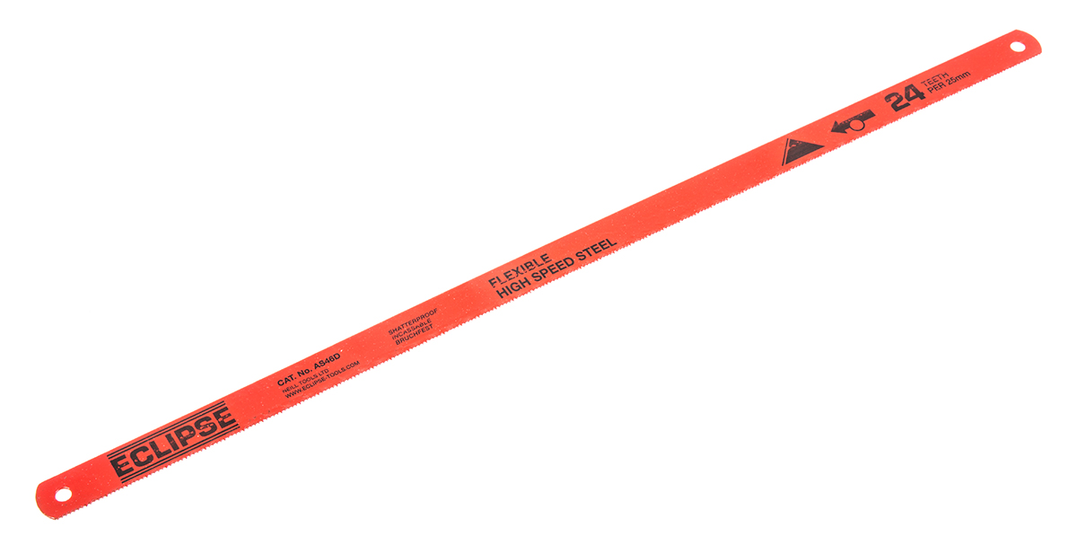 The Eclipse AS46DRS is a robust and efficient hacksaw blade designed for precision cutting. Measuring 300 mm in length, it is crafted from high-speed steel (HSS), ensuring durability and a long lifespan. The blade features 24 teeth per inch (TPI), offering a balance between speed and smoothness in cutting. Its combination of high-speed steel construction, fine teeth, and optimal length makes it an excellent choice for anyone needing a reliable cutting tool.