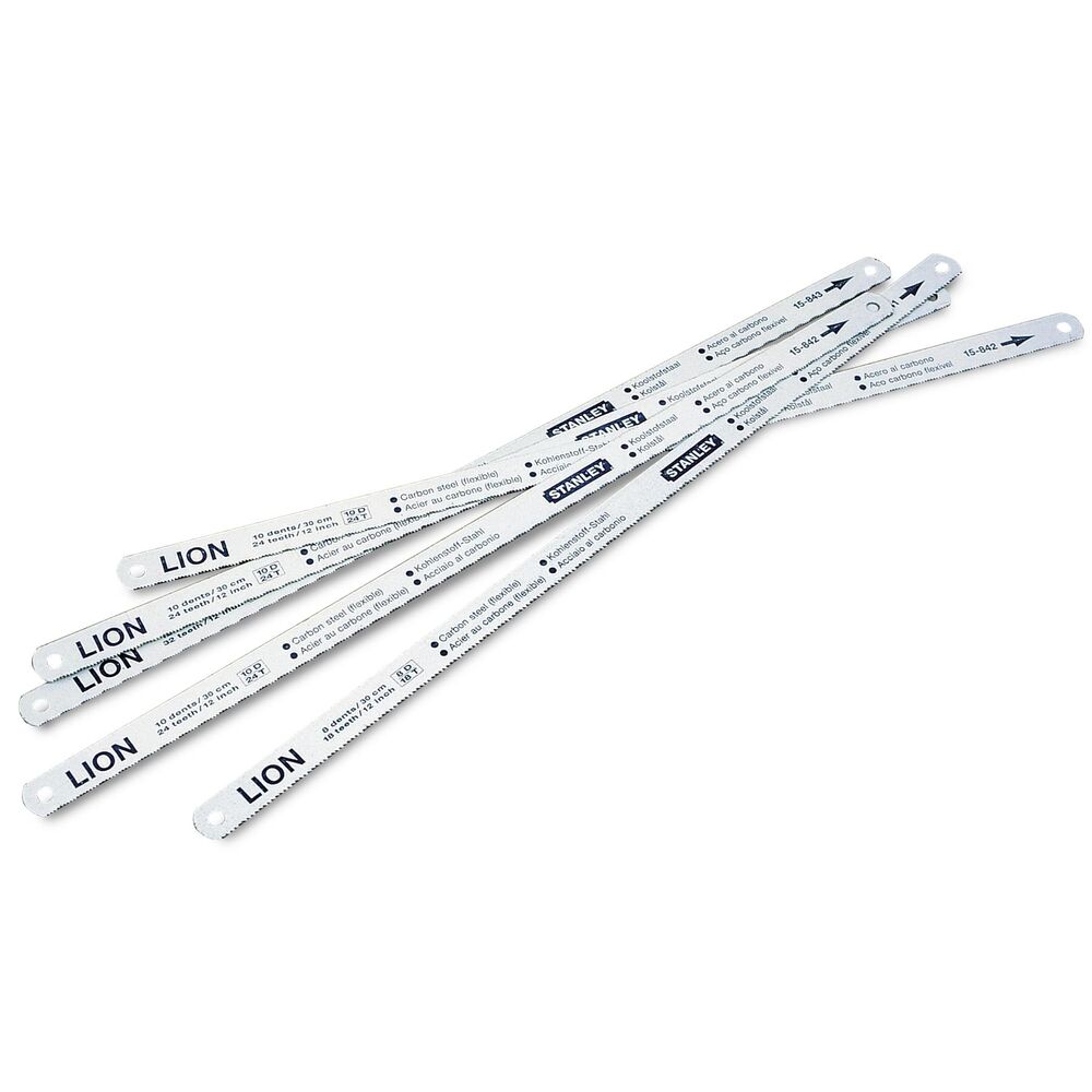 This is 300 mm Carbon Steel Hacksaw Blade manufactured by Stanley. The manufacturer part number is 0-15-801. It is designed with a hacksaw blade type saw blade . It is offered with a standard blade thickness about 0.6mm . The product is made from highly stable and reliable carbon steel. The blade has a length of 300 mm. It is offered to cut metal materials . The product consists of 5 pieces.