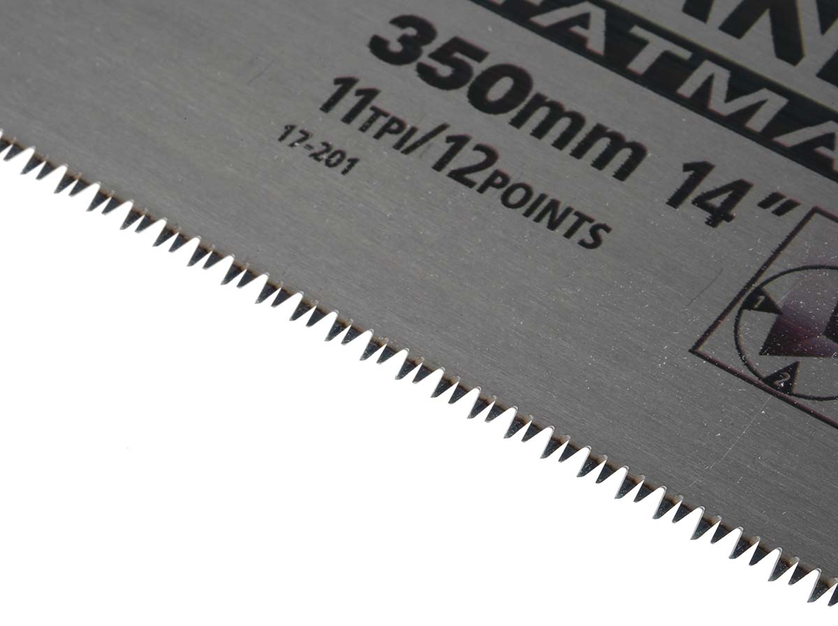 This is 350 mm Tenon Saw 11 TPI manufactured by Stanley FatMax. The manufacturer part number is 2-17-201. The blade has a length of 350 mm. It has 11 number of teeth per inch . It is created with a hand saw .