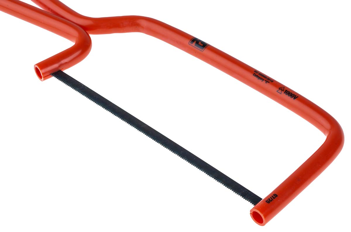 This is RS PRO 150 mm Hacksaw manufactured by ITL Insulated Tools Ltd. The manufacturer part number is RS_911-1152. The blade has a length of 150 mm. It is created with a hacksaw . In addition, its blade is made up of hardened steel material .