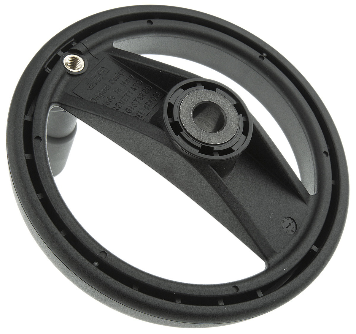 This is Black Technopolymer Hand Wheel 160mm manufactured by Elesa. The manufacturer part number is 78721. Moreover, it is spoked yes . The given diameter of mounting hole is 14mm. It has a decent black colour. Additionally, it has about 27mm mounting hole depth . While it is also supplied with highly stable steel insert material. Its wheel is made up of technopolymer material . Its wheel diameter is about 160mm . Basically, this handle is a type of revolving, allowing extreme comfort. It has a drilled hub yes .