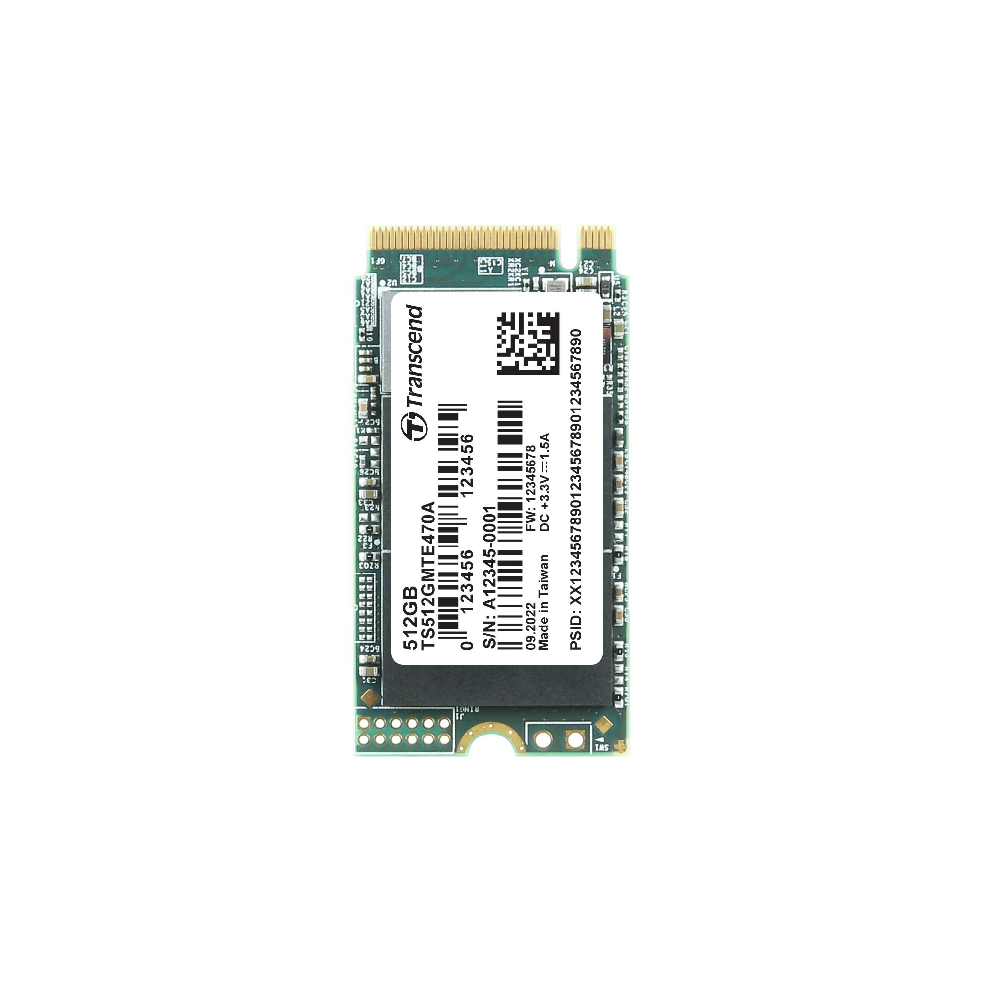 This is MTE470A M.2 2242 512 GB Internal SSD Hard Drive manufactured by Transcend. The manufacturer part number is TS512GMTE470A. It is tailored for industrial use yes . The module has the capacity of 512 gb. Additionally, it is featured with a/an ssd type hard drive . A bespoke product is nvme pcie gen 3 x 4 interface. It has a model mte470a. It is internal . It has a form factor of m.2 2242. It has a/an 3d tlc type Nand .