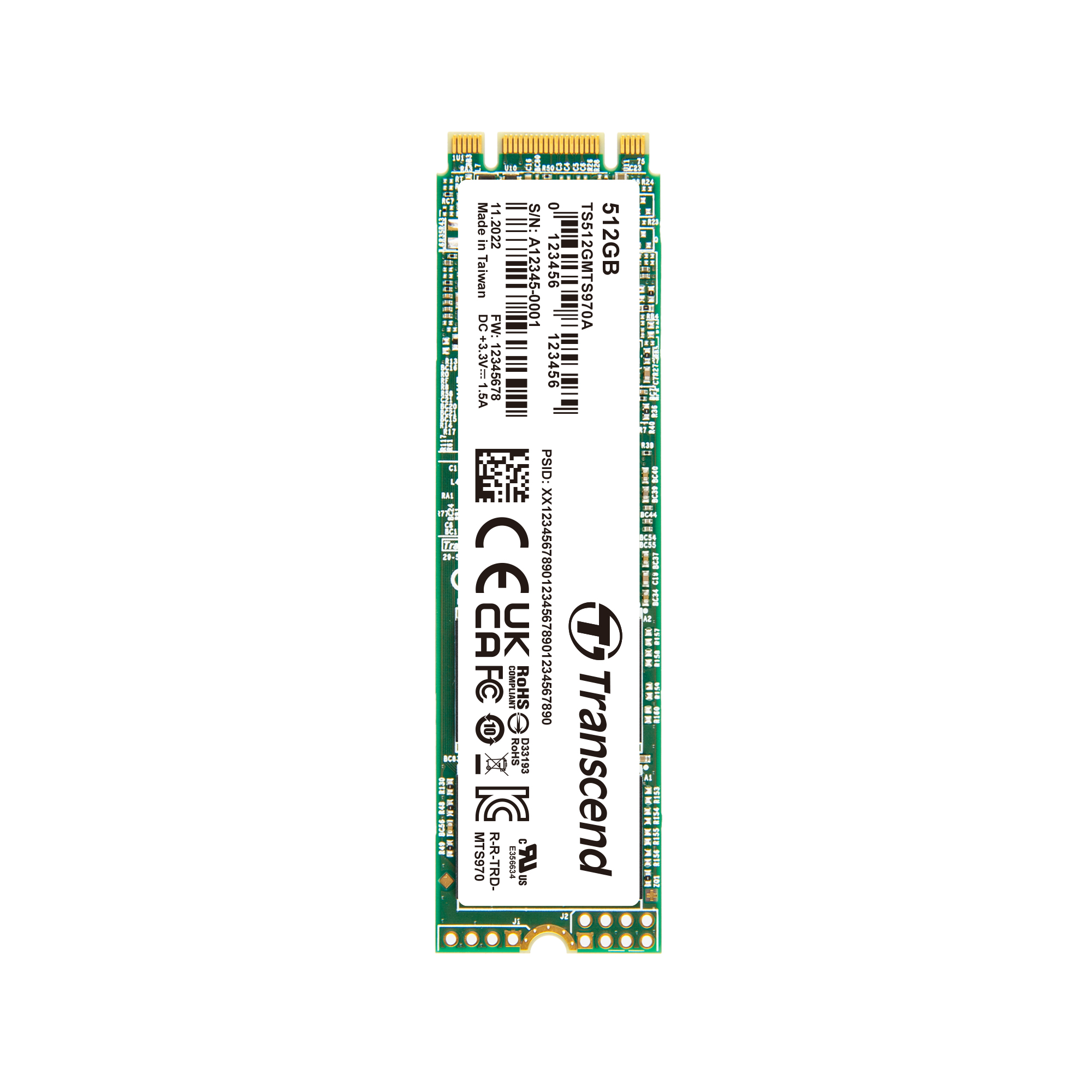 This is M.2 2280 512 GB Internal SSD Hard Drive manufactured by Transcend. The manufacturer part number is TS512GMTS970A. The product's typical temperature range incudes -40 → +85°c. It is tailored for industrial use yes . The module has the capacity of 512 gb. The given dimensions of the product include 80 x 22 x 3.58mm. The typical product's weight is 9g. Its encryption level is aes 256 bit . Additionally, it is featured with a/an ssd type hard drive . In addition, the height is 3.58mm. Furthermore, the product is 22mm wide. Its accurate length is 80mm. A bespoke product is sata iii interface. It has a model mts970a. It is internal . It has a form factor of m.2 (2280). It has a/an 3d tlc type Nand .