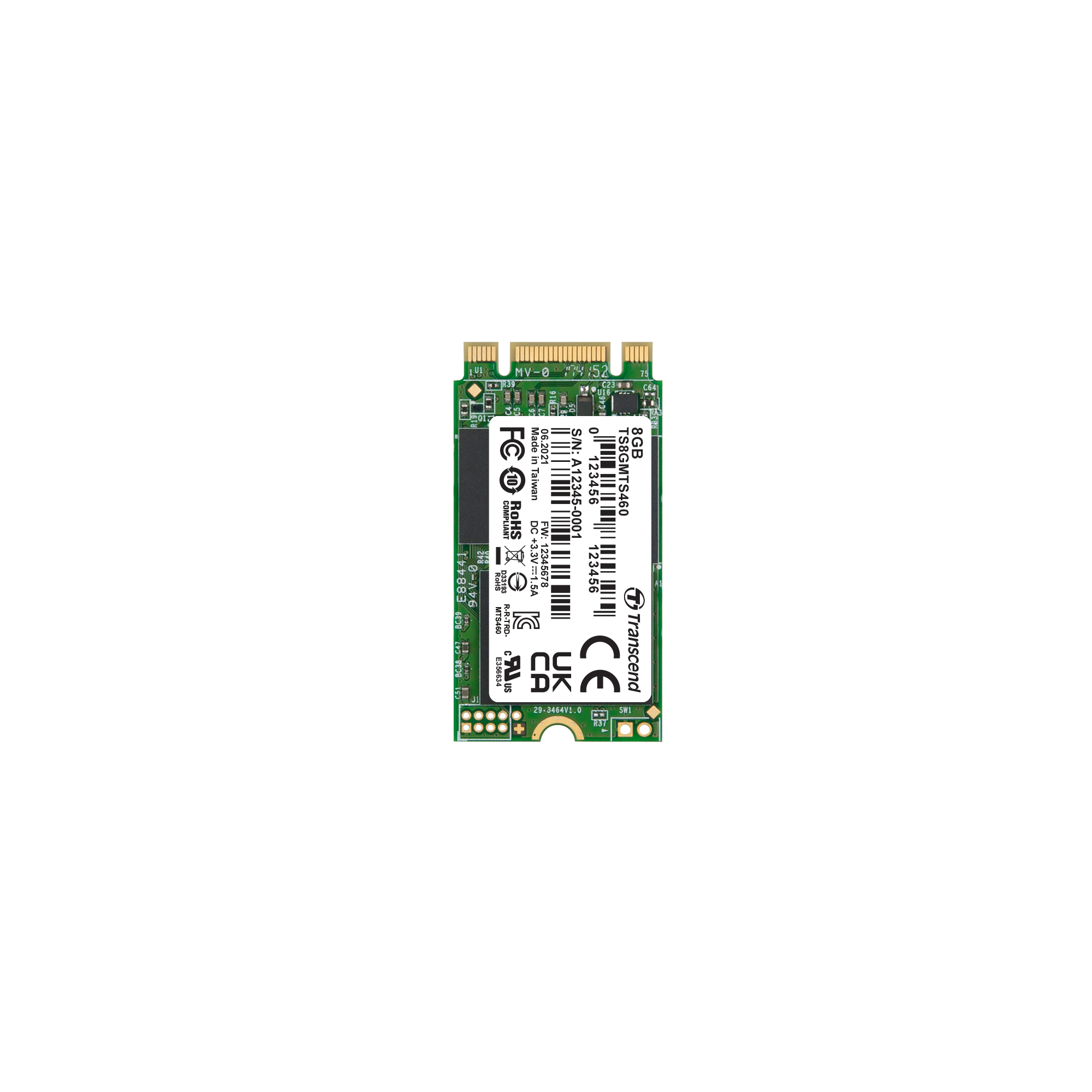 This is 8GB M.2 2242 SSD SATA3 B+M Key SLC mo manufactured by Transcend. The manufacturer part number is TS8GMTS460. Its encryption level is aes-256 . Its sub type is b+m key . It has a model number mts460. In addition, the height is 3.58mm. Furthermore, the product is 22 mm wide. Its accurate length is 42mm. It holds a typical memory size of 8gb. It is a type of sata iii 6 gb/s interface. ssd is a versatile product designed to provide user-defined applications. It has a form factor of 2242 d2-b-m. It is internal .