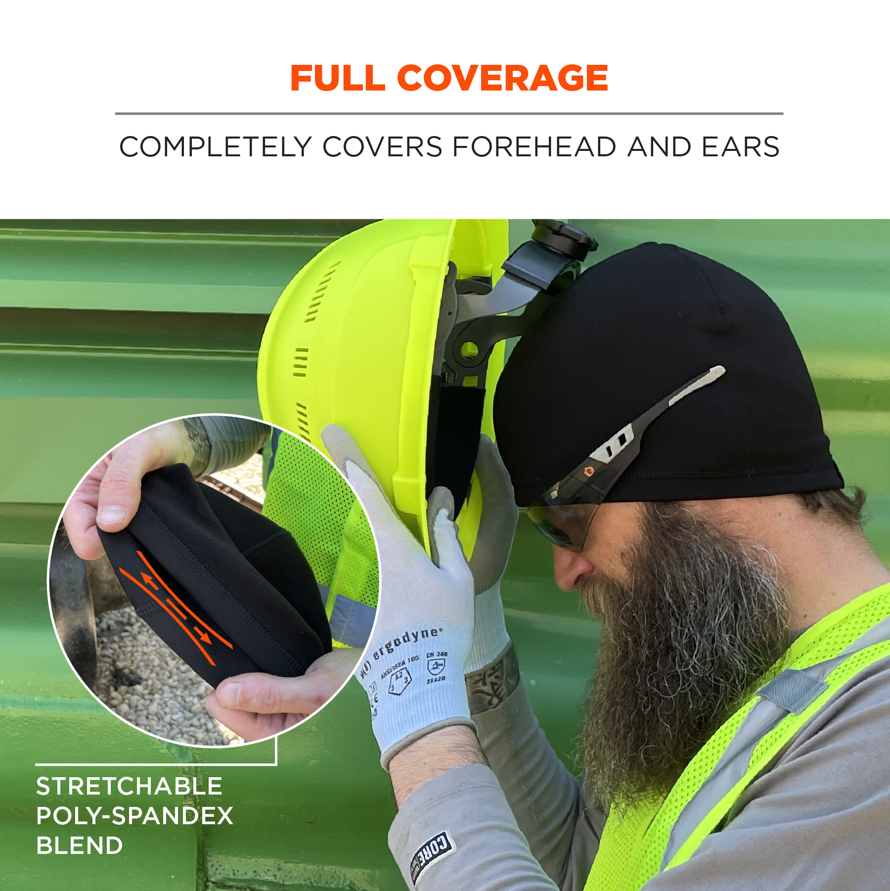 This is Polyester Spandex Black Hard Hat LinerHard Hat manufactured by Ergodyne. The manufacturer part number is 16908. The product is highly suitable for hard hat. It has a decent black colour. The product is made from highly stable and reliable polyester, spandex. The product has a Hard Hat Accessory Type of hard hat liner