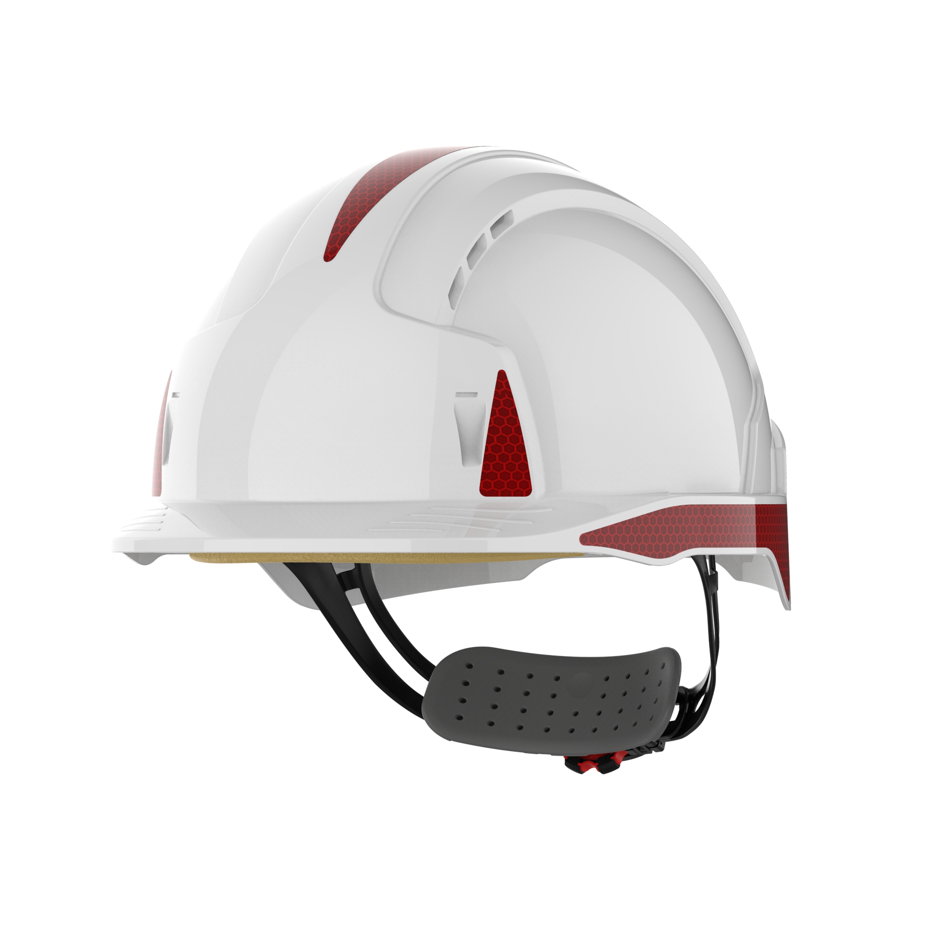 This is Red Helmet Connecting KitEVOLite manufactured by JSP. The manufacturer part number is AHV390-000-600. The product is highly suitable for evolite. It has a decent red colour. The product has a Hard Hat Accessory Type of helmet connecting kit