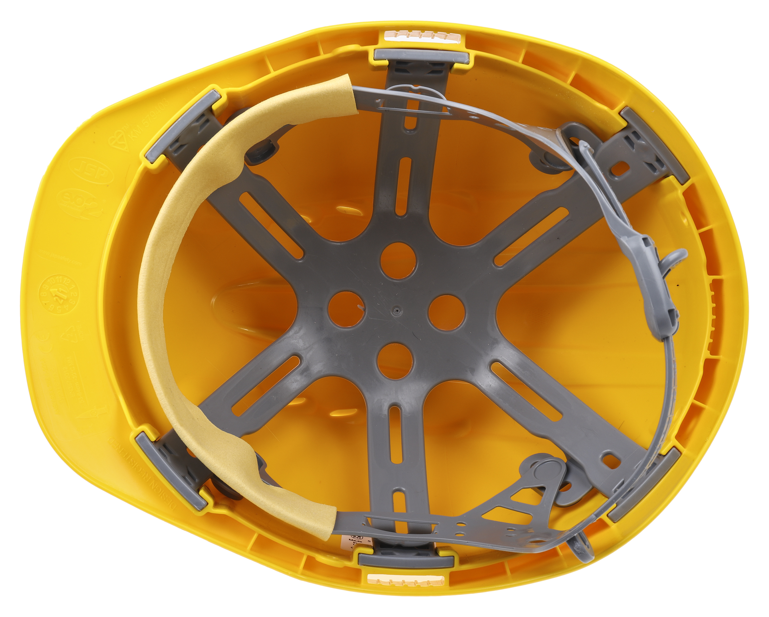 This is EVO2 Yellow HDPE Standard Peak Vented Hard Hat manufactured by JSP. The manufacturer part number is AJF030-000-200. It has a rain gutter no . It has an adjustable feature yes . It includes an integrated eye shield no . The product evo2, is a highly preferred choice for users. It has a decent yellow colour. The product is made from highly stable and reliable high performance polyethylene. Accessory slot included yes . It is ventilated yes . It has a standard type peak . It has integral sweatband feature yes . safety helmet is a versatile product designed to provide user-defined applications. It has a chip strap included no .