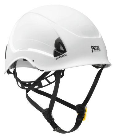 This is ALVEO BEST White ABS Short Peaked Helmet & Hard Hat manufactured by Petzl. The manufacturer part number is A20BWA. It complies with EN 397 no . It has integral sweatband feature no . It includes an integrated eye shield no . It has a lining feature no . It has a decent white colour. The product is made from highly stable and reliable abs. It features alveo best range. Accessory slot included yes . It is offered with an adjustable size yes . It has a rain gutter no . It has a short type peak . In addition, it is vented no . It has a chip strap included yes .