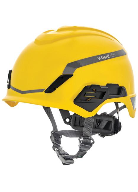 This is V-Gard H1 Yellow Safety Helmet with Chin Strap Adjustable manufactured by MSA Safety. The manufacturer part number is 10194795. It complies with EN 397 yes . The product complies with all safety standards, such as en397, en50365. It includes an integrated eye shield no . It has a lining feature no . It has a decent black, yellow colour. The product is made from highly stable and reliable hppe. Accessory slot included no . It is offered with an adjustable size yes . It has a rain gutter no . It features v-gard h1 range. safety helmet is a versatile product designed to provide user-defined applications. In addition, it is vented no . It has a chip strap included yes .