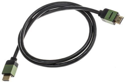 This is 1m Green HDMI Cable Male HDMI to Male HDMI manufactured by RS Pro. The manufacturer part number is 913-4874. Furthermore, the product is shielded with braid. Moreover, the product has a nominal 300 v dc voltage rating. Its connector A is of hdmi type . The strand size includes 30 awg. It is a typical hdmi cable cable. Connector A is a male allowing user-desired applications. The sheath has an adorable green colour. It includes a/an hdmi type connector B . Its accurate length is 1m. While connector B has a male gender. Whereas the outer sheath is manufactured from pvc material.
