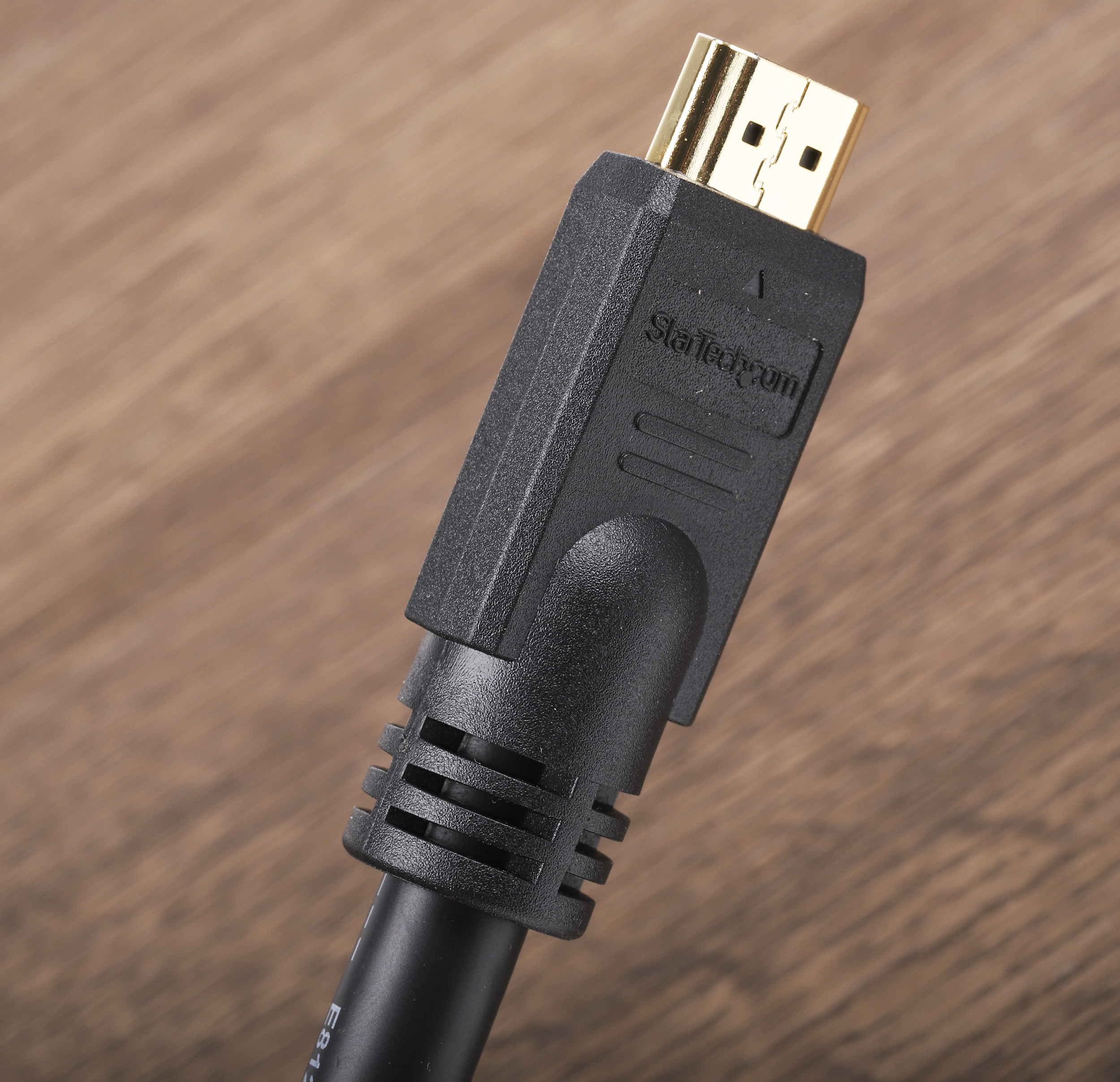 The StarTech.com HDMM10M is a high-speed, 10-meter male-to-male HDMI cable designed for superior audio and video transmission over extended distances. It supports a maximum 4K resolution at 30Hz under the HDMI 1.4 specification. Built for reliable performance, the cable features thick 24 AWG strands and robust shielding with aluminium-mylar foil and braid to prevent signal degradation. Encased in a durable PVC sheath, this cable is essential for long-distance connectivity in professional setups.