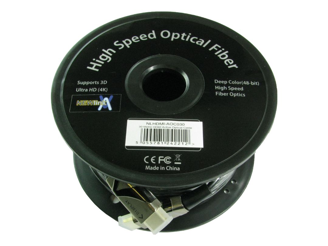 This is HDMI to HDMI Cable Male to Male - 30m manufactured by NewLink. The manufacturer part number is NLHDMI-AOC030. Connector 2 is a male connector. Whereas the outer sheath is manufactured from tpe material. The strand size includes 24 awg - 30 awg. This connector 1 is a male. The sheath has an adorable black colour. The product includes premium high speed HDMI cable . Its accurate length is 30m. It exhibits a maximum 4k @ 60hz resolution . Included HDMI version hdmi v2.0 . While the Connector 2 is hdmi. Connector 1 is hdmi.