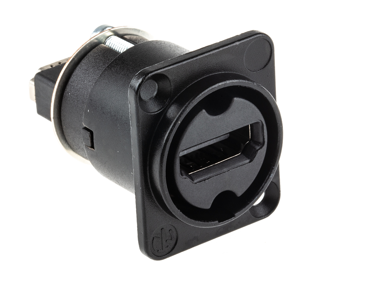 This is standard 19 Way Female HDMI Connector manufactured by Neutrik. The manufacturer part number is NAHDMI-W-B. The product contains 19 contacts. Whereas, the minimum operating temperature of the product is -25°c. In addition, female is the available "Gender" of the product. It has a decent black colour. The product also features robust die cast zinc housing material. The high-quality gold is used as contact plating material. It allows feed through termination method. The product is made from sturdy brass materials. It has a maximum operating temperature of +85°c. It has straight body orientation. The product is available in standard size.