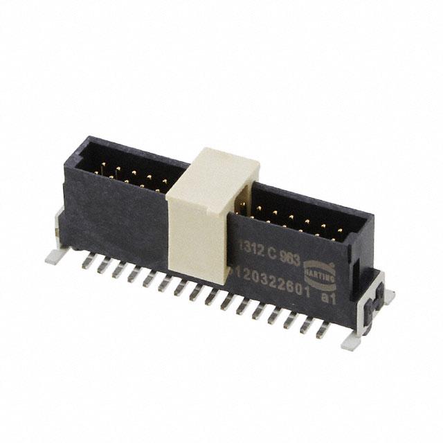 This is manufactured by HARTING. The manufacturer part number is 15120322601000. The product has a current rating of 1.7a. The product is available in surface mount configuration. The product har-flex, is a highly preferred choice for users. It has straight body orientation. It allows solder termination method. It is shrouded . It comes in 2 of rows. Moreover, the product is 1.27mm. The product contains 32 contacts. It comes in wire to board configuration. It carries [Serial Number] serial number. It has nice contact finishing of gold. Additionally, the product is designed with board to board or cable Style. It is assigned with possible HTSUS value of 8536.69.4040. The product is rohs3 compliant. The product has -55°c ~ 125°c operating temperature range. The product carries possible position value of 32. It has possible tin contact post finishing. Furthermore, a bespoke product features shrouded - 4 wall. 0.319" (8.10mm) of insulation height. In addition, it is reach unaffected. It carries ul94 v-0 of material flammability rating. In addition, black is the insulation color of the product. It has a typical square shape. It is shipped in tape & reel (tr) package . It carries 0.050" (1.27mm) of row spacing. header Connector type offer robust functionality. It is 0.157" (4.00mm) contact mated. However, all is the Number of Positions Loaded. Its typical moisture sensitivity level is 1 (unlimited). Furthermore, push-pull is the Fastening Type of the product. The product features solder termination style. It has a long 11 weeks standard lead time. It has 0.050" (1.27mm) of pitch-mating value. The splendid features of the product include board guide, pick and place, solder retention. The product har-flex®, is a highly preferred choice for users. It has typical contact type of male pin. The product is made from sturdy copper alloy materials. It has a robust liquid crystal polymer (lcp) insulation material. The product is designated with the ear99 code number.