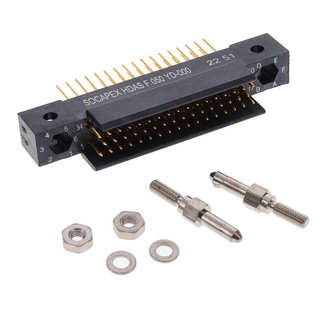 This is manufactured by Amphenol Aerospace Operations. The manufacturer part number is HDASF050YD-000. It has nice contact finishing of gold. Additionally, the product is designed with board to board or cable Style. It has possible gold contact post finishing. It is assigned with possible HTSUS value of 8536.69.4040. The product is rohs3 compliant. The product has -65°c ~ 150°c operating temperature range. The product carries possible position value of 50. In addition, black is the insulation color of the product. Furthermore, a bespoke product features shrouded - 2 wall. It comes in 3 of rows. It carries ul94 v-0 of material flammability rating. It has a typical circular shape. However, 39.4µin (1.00µm) is the "Contact Finish Thickness - Mating" of the product. Moreover, the product has a nominal 750v voltage rating. It carries 0.075" (1.91mm) of row spacing. header Connector type offer robust functionality. It is 0.264" (6.71mm) contact mated. However, all is the Number of Positions Loaded. Its typical moisture sensitivity level is not applicable. Furthermore, threaded is the Fastening Type of the product. The product features solder termination style. It has a long 8 weeks standard lead time. Additionally, the product's output is 4.5a per contact. 0.264" (6.71mm) is the given possible contact length (post) values. It has 0.075" (1.91mm) of pitch-mating value. The splendid features of the product include mating flange, mounting flange. The product is available in through hole configuration. The product hdas, is a highly preferred choice for users. In addition, tray is the available packaging type of the product. It has typical contact type of male pin. The product is made from sturdy copper alloy materials. It has a robust liquid crystal polymer (lcp), glass filled insulation material. The product is designated with the ear99 code number.
