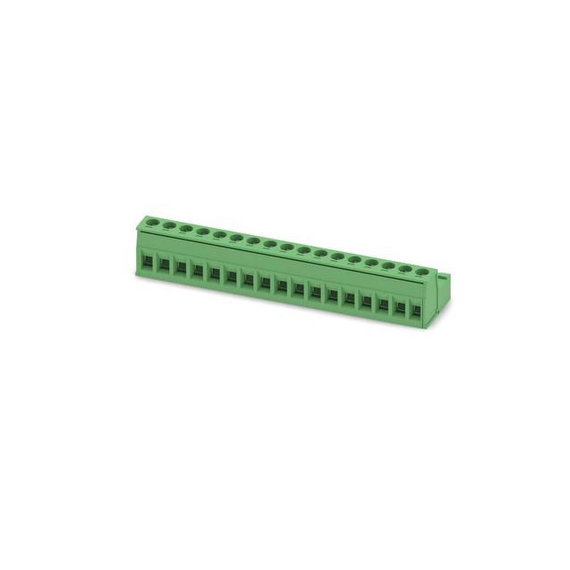 This is manufactured by Phoenix Contact. The manufacturer part number is 1786323. The product combicon ic, is a highly preferred choice for users. The product has a current rating of 12a. The product is available in plug-in configuration. Moreover, the product has a nominal 320 v voltage rating. It allows screw termination method. In addition, female is the available "Gender" of the product. It has a decent green colour. The product is made from highly stable and reliable polyamide. Its accurate length is 87.86mm. Furthermore, the product is 19.2mm wide. The product comes in 15mm depth. It comes in 1 of rows. It has straight body orientation. Moreover, the product is 5.08mm. The product contains 17 contacts. It comes in inverted plug configuration. It has 3d cad model CAD drawing . It is assigned with possible HTSUS value of 8536.90.4000. The product is rohs compliant. Moreover, it has screw - rising cage clamp terminal style. The product also features robust polyamide (pa), nylon housing material. It is available in screw size of m3. The typical length of the wire strip is 7mm. It comes in plug, male pins configuration. The product carries possible position value of 17. A 0.2-2.5mm² of wire gauge. It also a 180° plug wire entry. 0.591" (15.00mm) of insulation height. It carries ul94 v-0 of material flammability rating. The phoenix contact's product offers user-desired applications. Its typical moisture sensitivity level is 1 (unlimited). An IEC current of 12a. The product carries 1 levels. While 12-30 awg is its range or wire gauge. While 300 v is the typical voltage of the product. It carries torque - screw values of 0.5-0.6 nm (4.4-5.3 lb-in). It has a long 8 weeks standard lead time. The mating finish of the contact is tin. The nominal voltage of the product is 630 v. The product is available in free hanging (in-line) configuration. It has a classic green colour. It has 17 positions each level. In addition, bulk is the available packaging type of the product. The typical current includes 10 a. Moreover, the product is 0.200" (5.08mm). The product is designated with the ear99 code number.