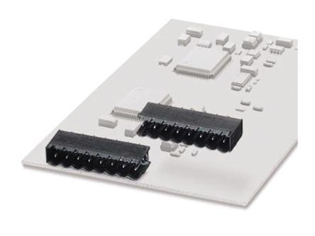 This is manufactured by Phoenix Contact. The manufacturer part number is 1959118. The product has a current rating of 12a. Moreover, the product has a nominal 400 v voltage rating. The product combicon cca, is a highly preferred choice for users. It allows solder termination method. It allows wire to board connector system. Moreover, the product is 5.08mm. The product contains 7 contacts. It comes in wire to board configuration. The product is made from sturdy tin materials. It is assigned with possible HTSUS value of 8536.69.4040. The product is rohs compliant. Moreover, it has solder terminal style. The product also features robust liquid crystal polymer (lcp) housing material. It comes in header, male pins, shrouded (3 side) configuration. The product carries possible position value of 7. The typical tail length of the product is [Contact Tail Lenght]. 0.339" (8.61mm) of insulation height. It carries ul94 v-0 of material flammability rating. It is shipped in bulk package . Its typical moisture sensitivity level is 1 (unlimited). An IEC current of 12a per position. While 300 v is the typical voltage of the product. The mating finish of the contact is tin. The nominal voltage of the product is 400 v. The product is available in through hole configuration. It has a classic black colour. It has 7 positions each level. The product has a 90°, right angle of a header orientation. The typical current includes 10 a. Moreover, the product is 0.200" (5.08mm). The product carries 1 levels. The product is designated with the ear99 code number.