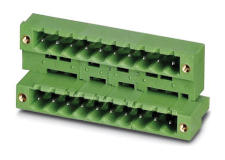 This is manufactured by Phoenix Contact. The manufacturer part number is 1846755. The product has a current rating of 10.0a. Moreover, the product has a nominal 400.0 v voltage rating. The product mdstb 2.5/ 8-gf, is a highly preferred choice for users. It allows solder termination method. Moreover, the product is 5.0mm. The product contains 8 contacts. The product is made from sturdy tin materials. It is assigned with possible HTSUS value of 8536.69.4040. The product is rohs compliant. Moreover, it has solder terminal style. The product also features robust polybutylene terephthalate (pbt) housing material. It comes in header, male pins, shrouded (4 side) configuration. The product carries possible position value of 16. The typical tail length of the product is [Contact Tail Lenght]. 0.933" (23.70mm) of insulation height. It carries ul94 v-0 of material flammability rating. It is shipped in bulk package . Its typical moisture sensitivity level is 1 (unlimited). An IEC current of 10a. While 300 v is the typical voltage of the product. It has a long 7 weeks standard lead time. The mating finish of the contact is tin. The nominal voltage of the product is 400 v. The splendid features of the product include mating flange. The product is available in through hole configuration. It has a classic green colour. The product combicon mdstb, is a highly preferred choice for users. It has 8 positions each level. The product has a 90°, right angle of a header orientation. The typical current includes 15 a. Moreover, the product is 0.197" (5.00mm). The product carries 2 levels. The product is designated with the ear99 code number.