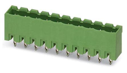 This is COMBICON EMSTBVA 5mm Pitch 11 Way PCB Terminal Block Header manufactured by Phoenix Contact. The manufacturer part number is 1914946. It is supplied as shrouded. The product has a current rating of 12a. The product emstbva 2.5/11-g, is a highly preferred choice for users. It allows press fit termination method. It allows wire to board connector system. Moreover, the product is 5mm. The product contains 11 contacts. The product is made from sturdy tin materials. It is assigned with possible HTSUS value of 8536.69.4040. Moreover, it has press-fit terminal style. The product also features robust polybutylene terephthalate (pbt) housing material. It comes in header, male pins, shrouded (4 side) configuration. The product carries possible position value of 11. The typical tail length of the product is [Contact Tail Lenght]. 0.472" (12.00mm) of insulation height. It carries ul94 v-0 of material flammability rating. The phoenix contact's product offers user-desired applications. Its typical moisture sensitivity level is not applicable. An IEC current of 12a. The product carries 1 levels. While 300 v is the typical voltage of the product. The mating finish of the contact is tin. The nominal voltage of the product is 320 v. The product is available in through hole configuration. It has a classic green colour. The product combicon emstbva, is a highly preferred choice for users. It has 11 positions each level. In addition, bulk is the available packaging type of the product. The product has a vertical of a header orientation. The typical current includes 12 a. Moreover, the product is 0.197" (5.00mm). The product is designated with the ear99 code number.