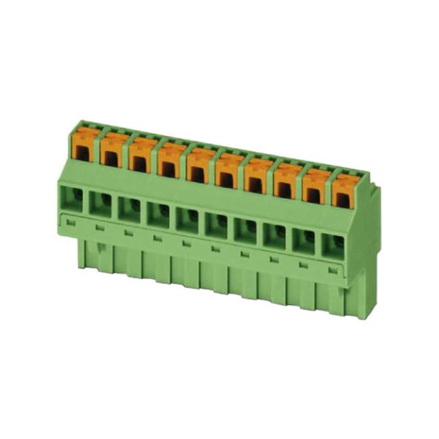 This is manufactured by Phoenix Contact. The manufacturer part number is 1861315. The product is available in pcb mount configuration. The product 5/..-st, fmcor 2, is a highly preferred choice for users. It has straight body orientation. It allows push in spring termination method. It comes in 1 of rows. Moreover, the product is 5.08mm. The product contains 10 contacts. It is assigned with possible HTSUS value of 8536.90.4000. The product is rohs3 compliant. Moreover, it has screwless - leg spring, push-in spring terminal style. The product also features robust polyamide (pa), nylon housing material. The typical length of the wire strip is 10mm. It comes in plug, female sockets configuration. The product carries possible position value of 10. A 0.2-2.5mm² of wire gauge. It also a 90° plug wire entry. 0.933" (23.70mm) of insulation height. In addition, it is reach unaffected. It carries ul94 v-0 of material flammability rating. The phoenix contact's product offers user-desired applications. Its typical moisture sensitivity level is not applicable. An IEC current of 12a. The product carries 1 levels. While 12-26 awg is its range or wire gauge. While 300 v is the typical voltage of the product. It has a long 7 weeks standard lead time. The mating finish of the contact is tin. The nominal voltage of the product is 320 v. The splendid features of the product include lever actuated, retention latches (wire side). The product is available in free hanging (in-line) configuration. It has a classic green colour. The product combicon fkcor, is a highly preferred choice for users. It has 10 positions each level. In addition, bulk is the available packaging type of the product. The typical current includes 12 a. Moreover, the product is 0.200" (5.08mm). The product is designated with the ear99 code number.