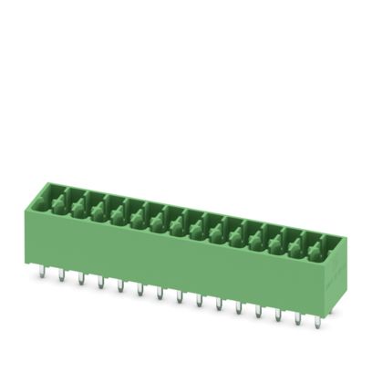 This is manufactured by Phoenix Contact. The manufacturer part number is 1053857. It allows combicon dfmc 1 connector system. Moreover, it has a standard 3.5mm pin tail length . The product contains 30 contacts. Whereas, the minimum operating temperature of the product is -40°c. The product also features robust polybutylene terephthalate housing material. It is supplied as shrouded. The product dmcv, is a highly preferred choice for users. The product is made from sturdy copper alloy materials. This male contact is widely suited for specific applications. Features a 8a current in A. It comes in 2 of rows. It carries a 160 v of voltage. The high-quality tin plated is used as contact plating material. Moreover, the product is 3.5mm. It has about 3.5mm mating pin in length . pcb header is a versatile product designed to provide user-defined applications. It has a maximum operating temperature of 100°c. It has a wave soldering mount type mount . It is assigned with possible HTSUS value of 8536.69.4040. Moreover, it has solder terminal style. The product also features robust polybutylene terephthalate (pbt) housing material. The product has -40°c ~ 100°c operating temperature range. It comes in header, male pins, shrouded (4 side) configuration. The product carries possible position value of 30. The typical tail length of the product is [Contact Tail Lenght]. 0.394" (10.00mm) of insulation height. It carries ul94 v-0 of material flammability rating. It is shipped in bulk package . An IEC current of 8a. While 300 v is the typical voltage of the product. It has a long 8 weeks standard lead time. The mating finish of the contact is tin. The nominal voltage of the product is 160 v. The product is available in through hole configuration. It has a classic green colour. The product combicon dmcv, is a highly preferred choice for users. It has 15 positions each level. The product has a vertical of a header orientation. The typical current includes 8 a. Moreover, the product is 0.138" (3.50mm). The product carries 2 levels. The product is designated with the ear99 code number.