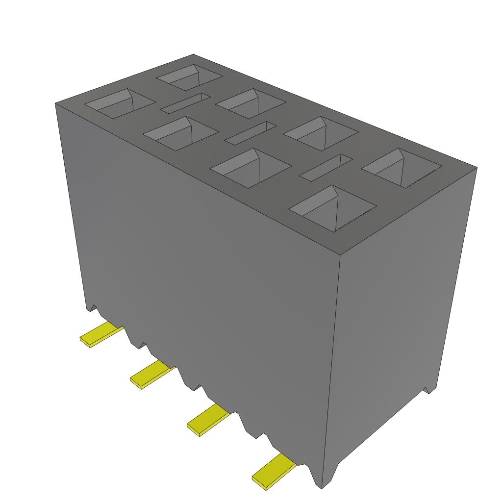 This is manufactured by Samtec Inc.. The manufacturer part number is SSM-104-S-DV-BE. It has nice contact finishing of gold. Additionally, the product is designed with board to board or cable Style. It has possible tin contact post finishing. It is assigned with possible HTSUS value of 8536.69.4040. The product is rohs3 compliant. The product has -55°c ~ 125°c operating temperature range. The product carries possible position value of 8. 0.290" (7.37mm) of insulation height. In addition, black is the insulation color of the product. It comes in 2 of rows. It has a typical square shape. Moreover, the product has a nominal 405vac, 572vdc voltage rating. It carries 0.100" (2.54mm) of row spacing. receptacle, bottom entry Connector type offer robust functionality. However, all is the Number of Positions Loaded. Its typical moisture sensitivity level is 1 (unlimited). However, 30.0µin (0.76µm) is the "Contact Finish Thickness - Mating" of the product. Furthermore, push-pull is the Fastening Type of the product. The product features solder termination style. It has a long 6 weeks standard lead time. Additionally, the product's output is 5.2a per contact. It has 0.100" (2.54mm) of pitch-mating value. The product is available in surface mount configuration. The product tiger claw™ ssm, is a highly preferred choice for users. In addition, tube is the available packaging type of the product. It has a robust liquid crystal polymer (lcp) insulation material. It has typical contact type of female socket. The product is made from sturdy phosphor bronze materials. Moreover, it corresponds to ssm-104, a base product number of the product. The product is designated with the ear99 code number.