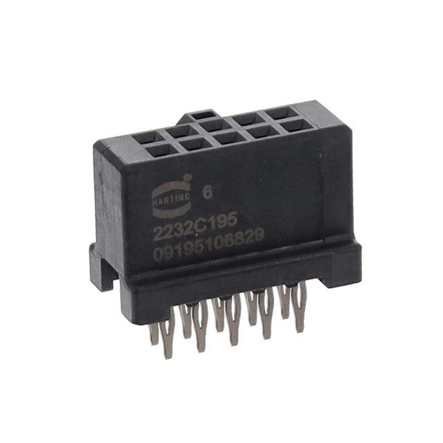 This is manufactured by HARTING. The manufacturer part number is 09195106829. It has nice contact finishing of gold. Additionally, the product is designed with board to board or cable Style. It has possible nickel contact post finishing. It is assigned with possible HTSUS value of 8536.69.4040. The product is rohs3 compliant. The product has -55°c ~ 125°c operating temperature range. The product carries possible position value of 10. 0.455" (11.56mm) of insulation height. In addition, it is reach unaffected. It comes in 2 of rows. It carries ul94 v-0 of material flammability rating. In addition, black is the insulation color of the product. It has a typical square shape. It is shipped in bulk package . It carries 0.100" (2.54mm) of row spacing. receptacle Connector type offer robust functionality. However, all is the Number of Positions Loaded. Its typical moisture sensitivity level is 1 (unlimited). Furthermore, push-pull is the Fastening Type of the product. The product features press-fit termination style. It has a long 8 weeks standard lead time. Additionally, the product's output is 1a. 0.177" (4.50mm) is the given possible contact length (post) values. It has 0.100" (2.54mm) of pitch-mating value. The product is available in through hole configuration. The product sek, is a highly preferred choice for users. It has typical contact type of female socket. The product is made from sturdy copper alloy materials. It has a robust liquid crystal polymer (lcp) insulation material. The product is designated with the ear99 code number.