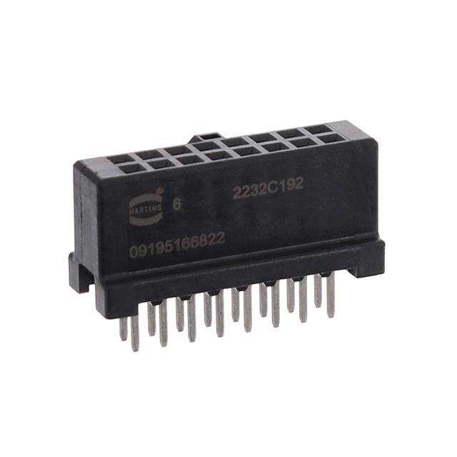 This is manufactured by HARTING. The manufacturer part number is 09195166822. It has nice contact finishing of gold. Additionally, the product is designed with board to board or cable Style. It has possible tin contact post finishing. It is assigned with possible HTSUS value of 8536.69.4040. The product is rohs3 compliant. The product has -55°c ~ 125°c operating temperature range. The product carries possible position value of 16. 0.455" (11.56mm) of insulation height. In addition, it is reach unaffected. It comes in 2 of rows. It carries ul94 v-0 of material flammability rating. In addition, black is the insulation color of the product. It has a typical square shape. It is shipped in bulk package . It carries 0.100" (2.54mm) of row spacing. receptacle Connector type offer robust functionality. However, all is the Number of Positions Loaded. Its typical moisture sensitivity level is 1 (unlimited). Furthermore, push-pull is the Fastening Type of the product. The product features solder termination style. It has a long 8 weeks standard lead time. Additionally, the product's output is 1a. 0.177" (4.50mm) is the given possible contact length (post) values. It has 0.100" (2.54mm) of pitch-mating value. The product is available in through hole configuration. The product sek, is a highly preferred choice for users. It has typical contact type of female socket. The product is made from sturdy copper alloy materials. It has a robust liquid crystal polymer (lcp) insulation material. The product is designated with the ear99 code number.