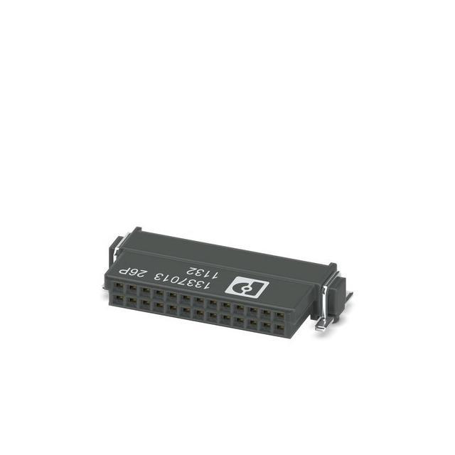 This is manufactured by Phoenix Contact. The manufacturer part number is 1337013. The product fr, is a highly preferred choice for users. The connector set is designed to provide robust applications in a variety of specific settings. This versatile kit contents include smd female connectors components. It has nice contact finishing of gold. Additionally, the product is designed with board to board Style. It has possible tin contact post finishing. It is assigned with possible HTSUS value of 8536.69.4040. The product is rohs3 compliant. The product has -55°c ~ 125°c operating temperature range. The product carries possible position value of 26. 0.149" (3.78mm) of insulation height. It comes in 2 of rows. It carries ul94 v-0 of material flammability rating. In addition, black is the insulation color of the product. It has a typical rectangular shape. It is shipped in tape & reel (tr) package . It carries 0.050" (1.27mm) of row spacing. receptacle Connector type offer robust functionality. However, all is the Number of Positions Loaded. Its typical moisture sensitivity level is 1 (unlimited). Furthermore, push-pull is the Fastening Type of the product. The product features solder termination style. It has a long 17 weeks standard lead time. Additionally, the product's output is 2.2a. It has 0.050" (1.27mm) of pitch-mating value. The splendid features of the product include board guide, solder retention. The product is available in surface mount, right angle configuration. It has typical contact type of female socket. The product is made from sturdy copper alloy materials. It has a robust liquid crystal polymer (lcp) insulation material. The product is designated with the ear99 code number.
